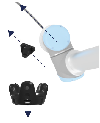これをキャリブレーションするには、TrackerのY軸がロボットベースのワイヤーと同じ方向を向いている必要があります(図5参照)。